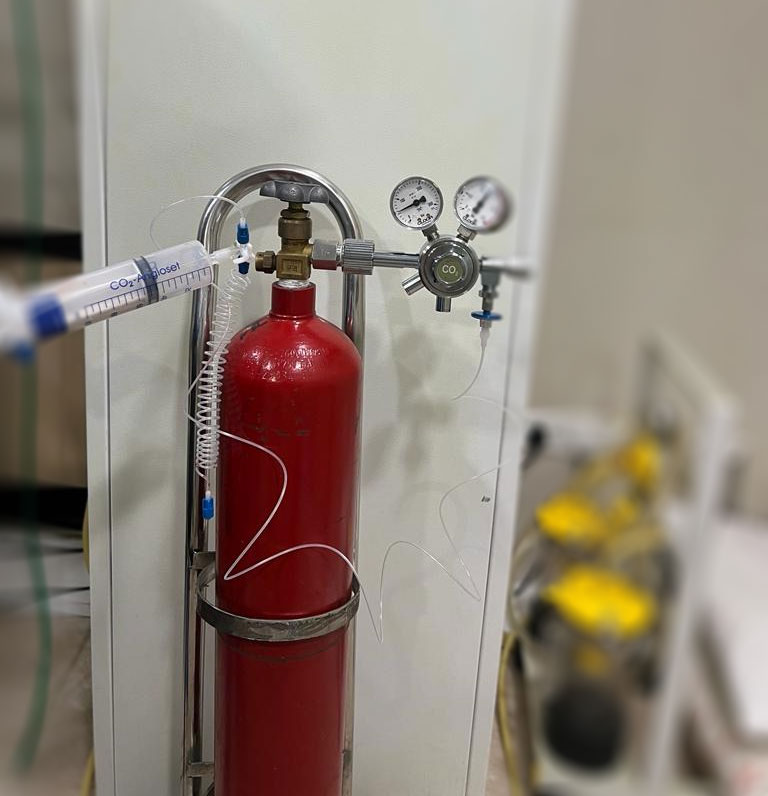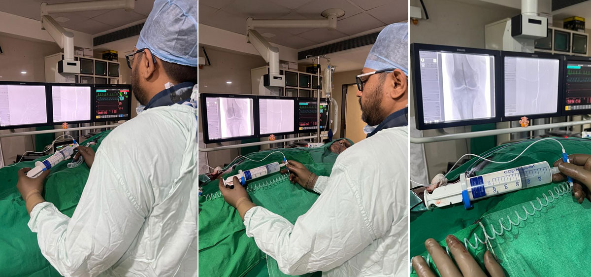 Patient with compromised kidney function cannot under go conventional angiography with routine dye. As dye is removed from body bye kidney, if kidneys are not functioning to full capacity as happens in long standing daibeties dye used can cause kidney failure. So the safest option to perform angiography is by using carbon dioxide gas as contrast agent which is easily dissolved in blood.