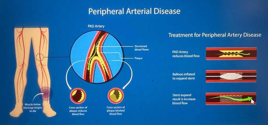 Peripheral Arterial Disease (PAD), is caused by gradual narrowing of blood vessel supplying upper limb, lower limb (legs), brain, stomach intestine and kidneys. It commonly involves lower limb. This leads to a reduction in blood flow to the extremities, causing a range of symptoms.